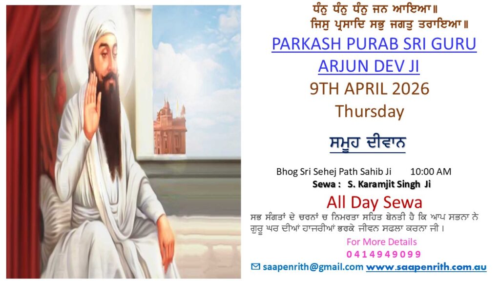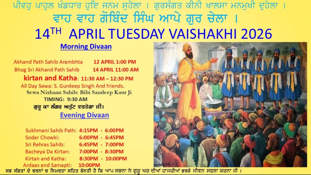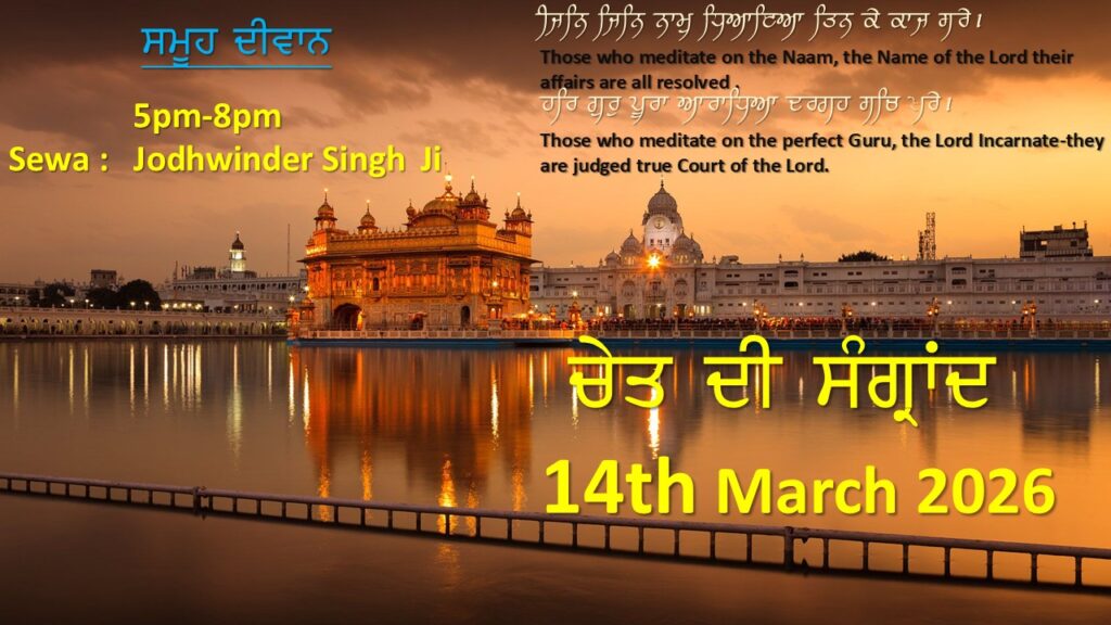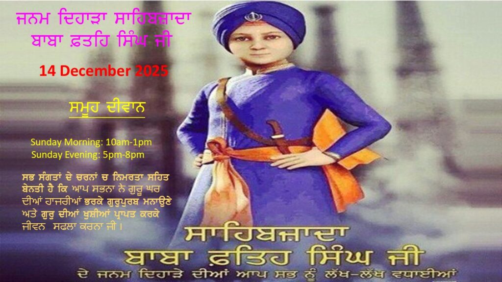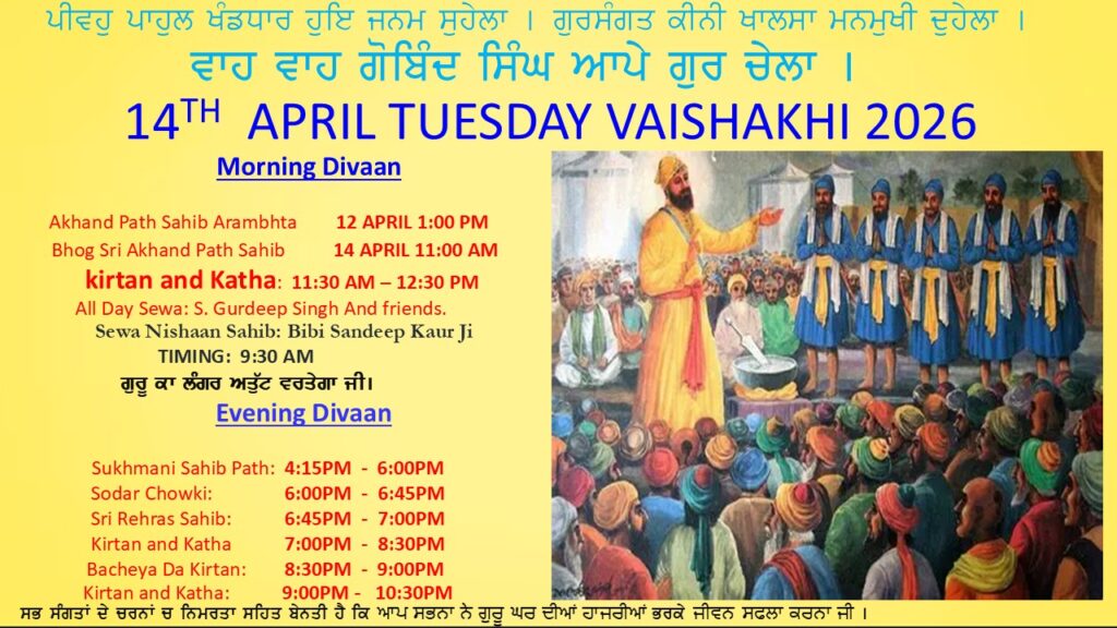 Every Saturday and Sunday Sukhmani sahib Diwan whole day & Kirtan followed by langar